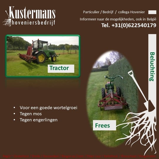 U beslist, en hoveniersbedrijf Kustermans kan volgens uw wens leveren en werkzaamheden uitvoeren